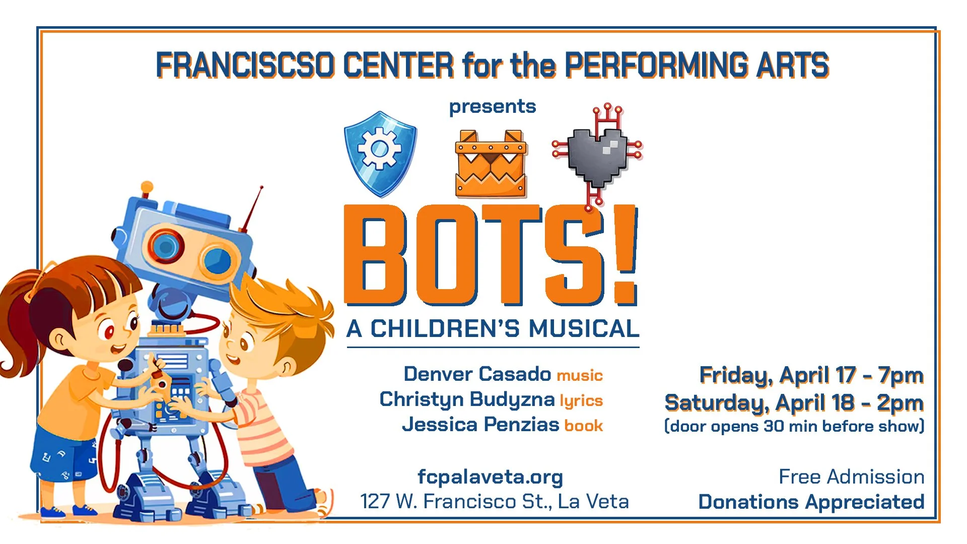 Welcome to the BOTS Robotics Competition where teams and their (singing and dancing) robots are all vying for the top prize! Amidst the coding, building, and fierce competition, two members from rival teams befriend one another and throw everything off-balance. Will their collaborative spirit sabotage their teams’ chances of winning? This STEM musical invites humans and robots alike to discover the power of technology and teamwork!